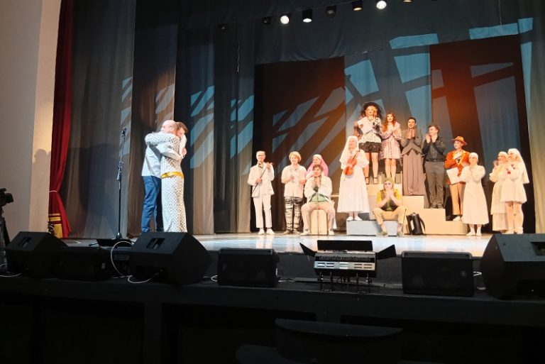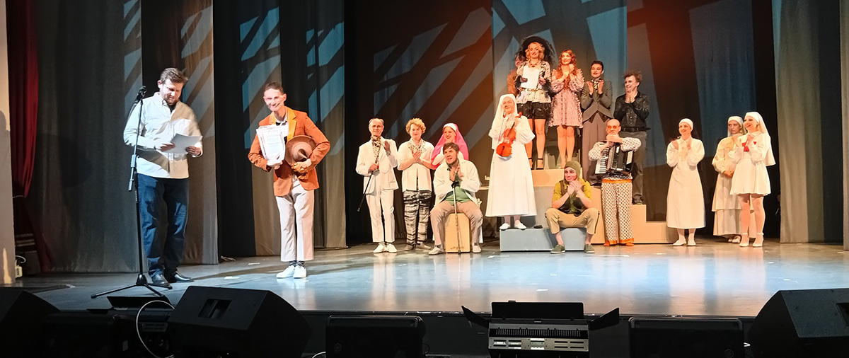 Артистов после окончания спектакля «Тень» со сцены  поздравил с профессиональным праздником главный режиссер Театра Защитника Отечества Андрей Корионов, и вручил им дипломы под аплодисменты зрителей.